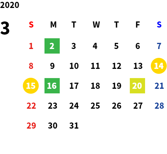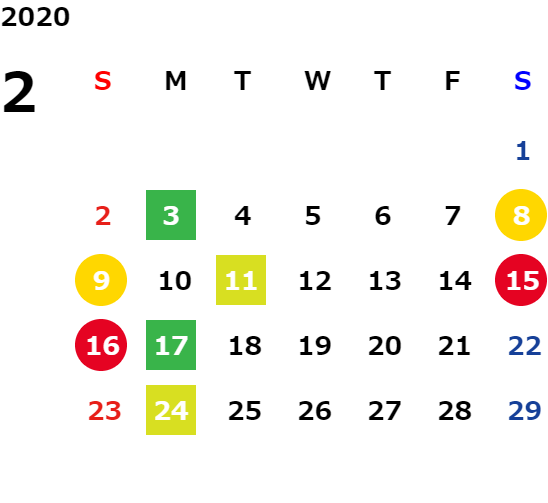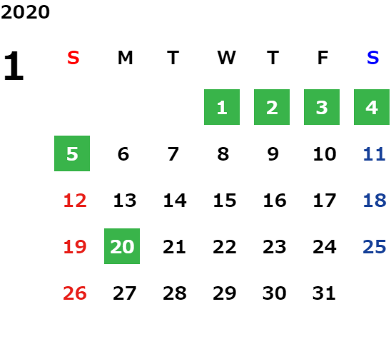 営業日カレンダー